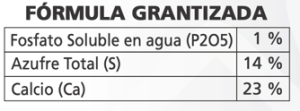 Es un fertilizante inorgánico de aplicación directa al suelo. La dosis de empleo debe ser realizada bajo la prescripción de un ingeniero agrónomo con base al análisis de suelo y/o tejido foliar.